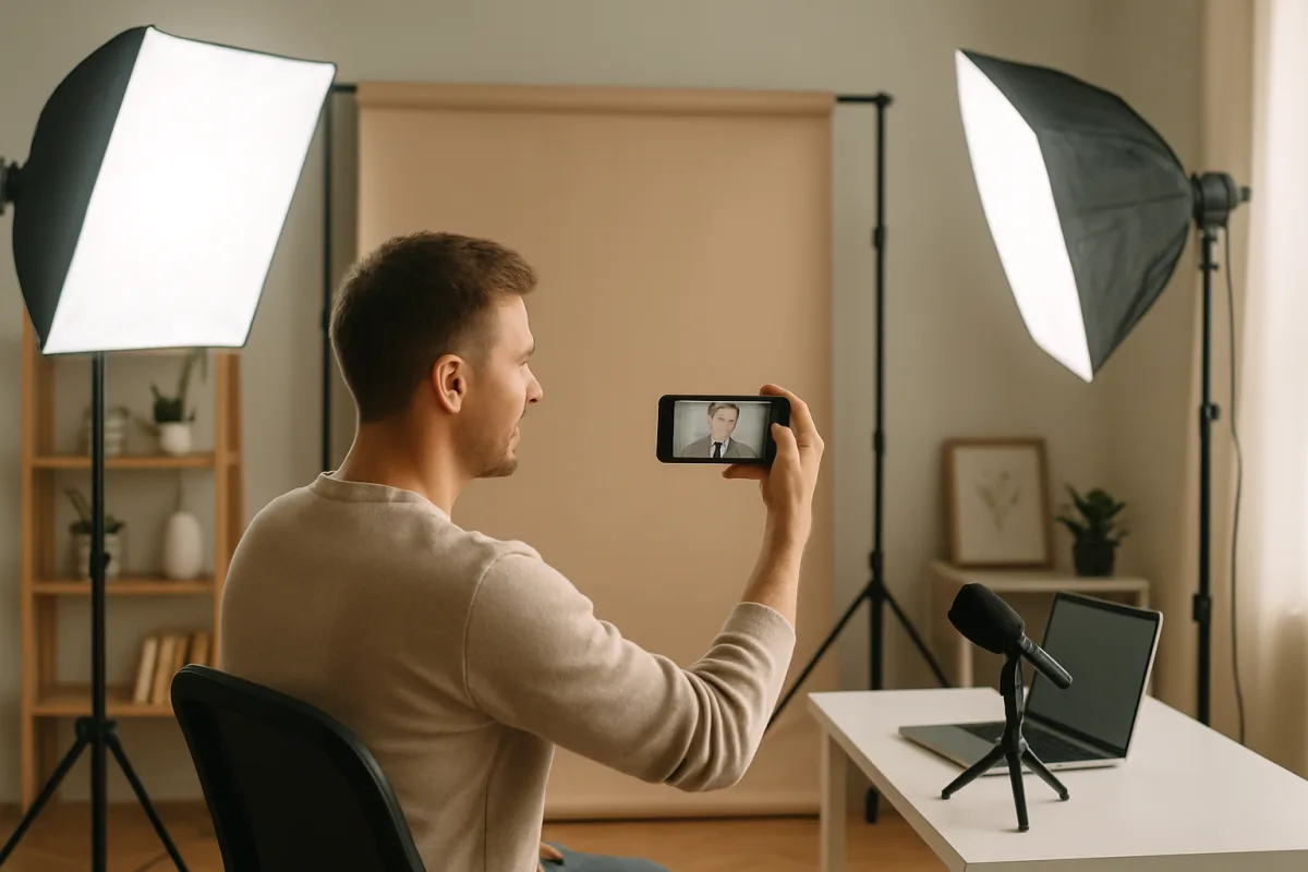 Inicie usando seu smartphone com boa câmera, iluminação natural ou um ring light acessível e fundos simples. Aos poucos, vá melhorando seu setup conforme seus lucros aumentem.